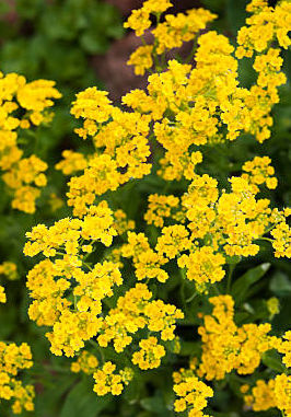 A lovely perennial Alyssum making a compact, low growing plant of silver foliage, and bearing short stems of golden yellow flower clusters that cover the plant in spring Requires a situation that is well drained in the sun. These plants are just coming into seasonal growth, growing in a 9cm container