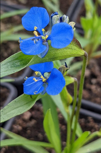 This is a dwarf species of Commelina, not often offered, making a small tuberous rooted perennial plant that comes into growth in early summer having fine linear foliage and electric blue flowers over a long period of time in summer through until autumn. Height 30cms The plant is dormant thru winter