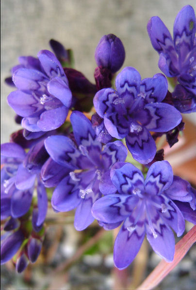 A beautiful wee South African bulb, great for containers or the rock garden with a sandy free draining soil in the sun. The flowers on this species are blue, with lovely markings, carried in clusters that appear through the early spring