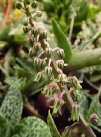 PALE LEAF FORM : Scilla violacea – A small growing bulbous plant in the Hyacinthaceae family. A summer growing plant with its beautiful speckled soft green foliage, followed by short stems of creamy pink flowers. Bulbs prefer to sit on top of the ground and require a semi shaded situation as it’s natural growing habitat is woodland shaded areas.. These plants are growing in 9cm containers.