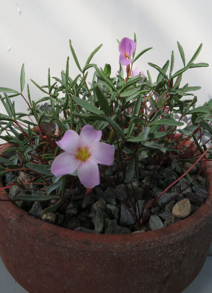 A rarely offered species of collectable Oxalis that has beautiful ferny grey green foliage and lovely soft pinky lavender flowers in the cooler months. Best grown in pots with free draining mix and kept dry during their dormancy in summer.