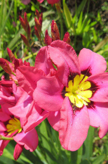 Harlequin Flower – An easy to grow spring flowering bulbous plant. Makes short sword like foliage and stems of soft coral pink flowers with a golden eye during spring Requires a sunny well drained situation, soon forms a nice clump.